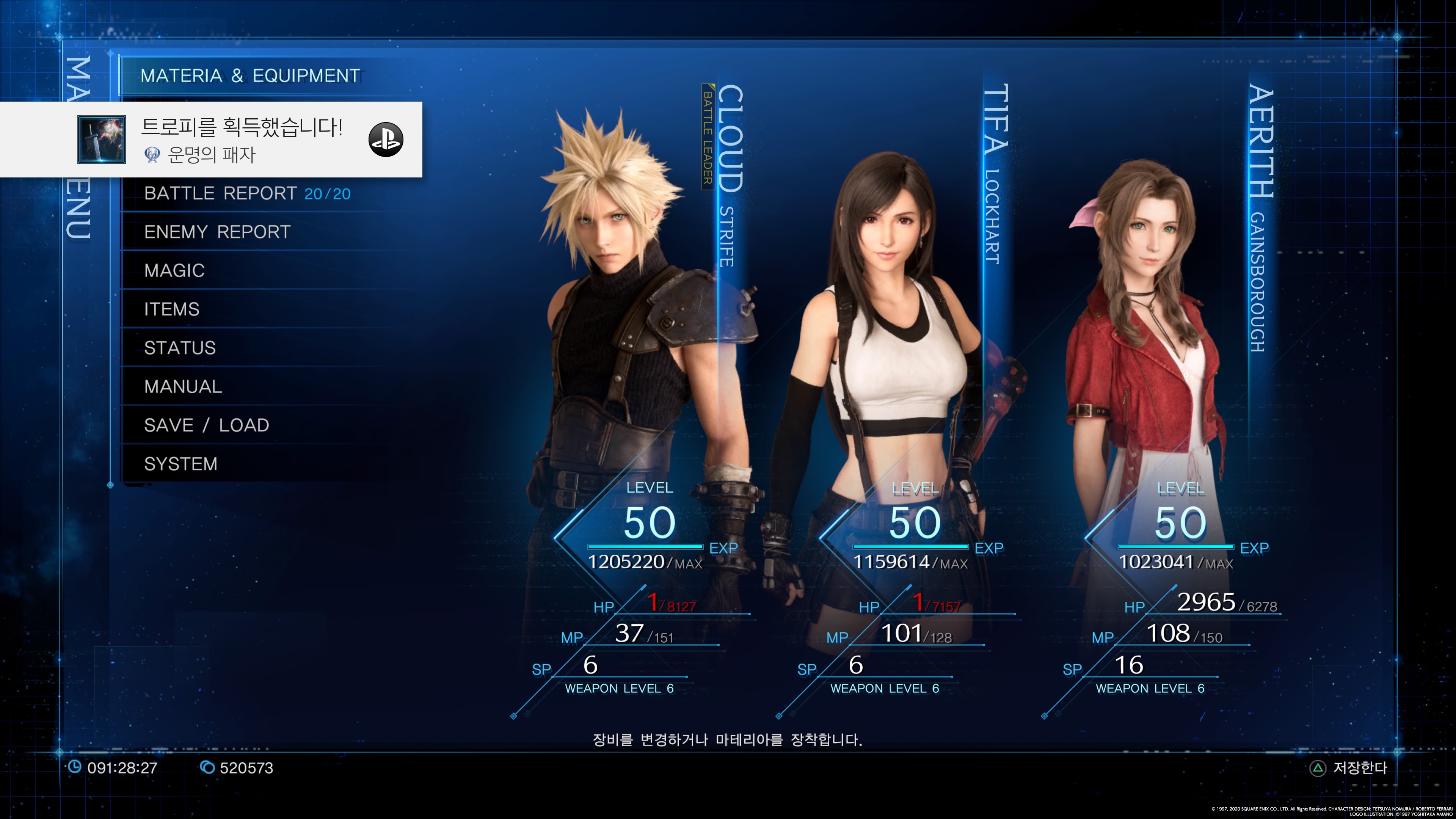 원작의 상징성이었던 마테리아 조합은 변경점이 거의 없이 리메이크에 들어왔는데 범위화라던가 고-급 마테리아들은 회차를 진행해도 획득이 1개로 고정이라서 상쾌한 전투는 기대하기 어렵다.