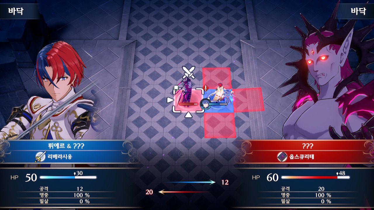 근접공격을 해야 할 경우 브레이크 만들어서 끝장내기 위해 어느캐릭터로 몇번째로 공격을 할지 공격 순서를 어느정도 머리에서 생각하고 있어야한다. 적의 공격범위내에서 행동을 끝낼경우 무기 상성으로 얼마나 얻어맞을지도 고려해야함.