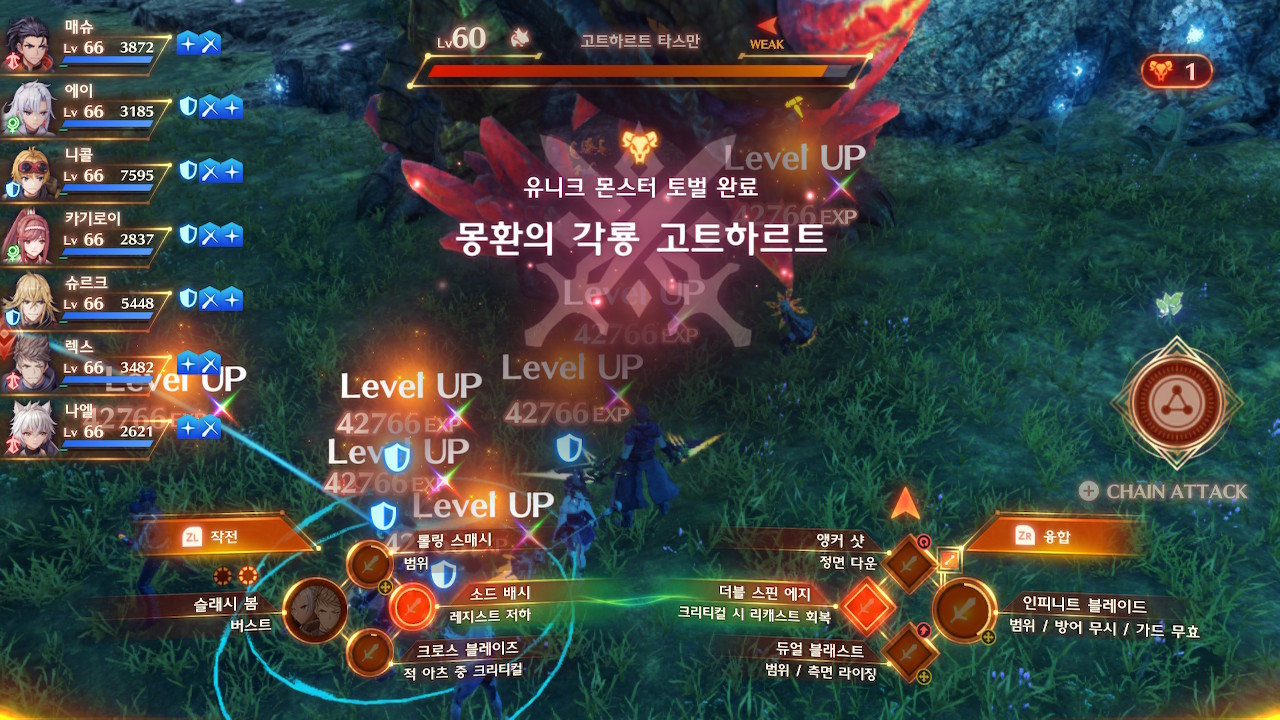 체인어택으로 대상의 방어력 감소와 체인게이지 회복, 배율뻥튀기등을 이용해서 어떡게든 한방에 녹이라는 의미같은데 엔딩 후 유니크 몹들 잡는다고 악세서리 세팅은 어떡게 할지, 교육서는 누구한테 뭘 달아줄지 여러모로 머리가 아파진다.