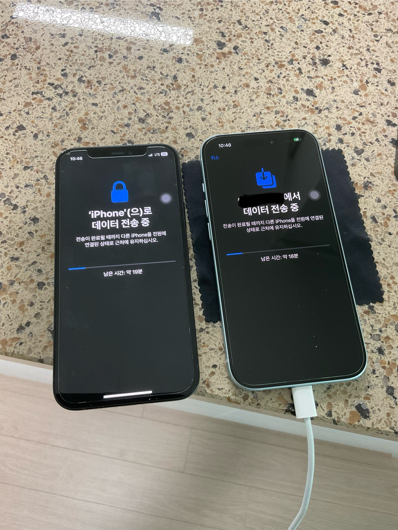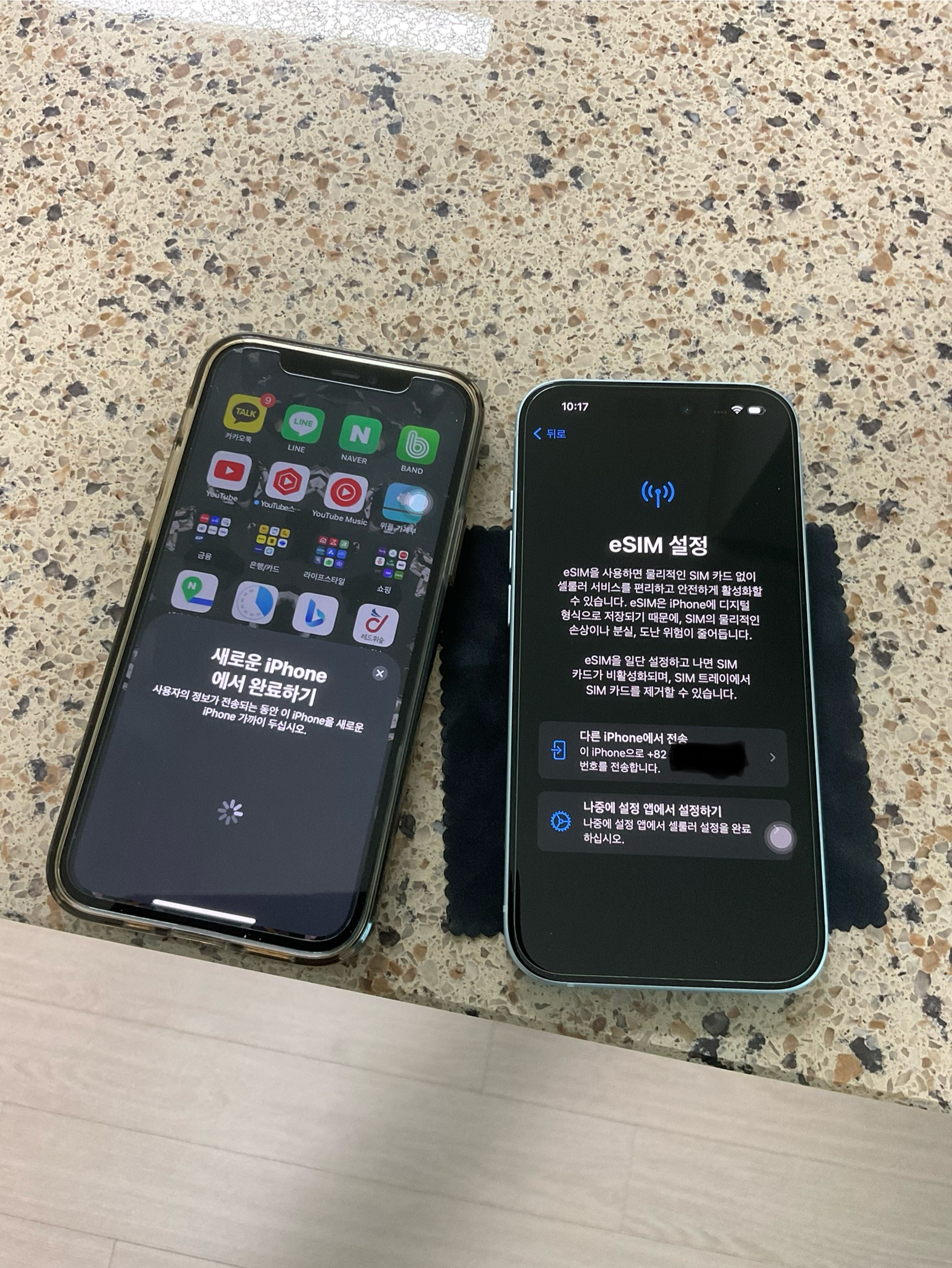 신규폰 기동시키면 근처에 아이폰 있을 경우 데이터 마이그레이션 할꺼냐고 물어본다.