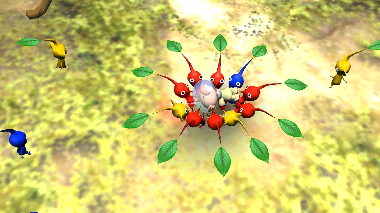 그리고 종류별로 해산시킬 경우 X버튼을 누르면 근처에 알아서 색깔별로 피크민들끼리 모여있게되는데 문제는 이 과정에서 해산 범위내에 타격가능한 무언가가 근처에 있으면 노랑피크민들이 죄다 그거 때리러가다가 불에 타죽거나 근처 원생물한테 정면에서 달려들어 다 잡아먹혀버리는 경우도 있고 신경써야하는게 한두개가 아니다.