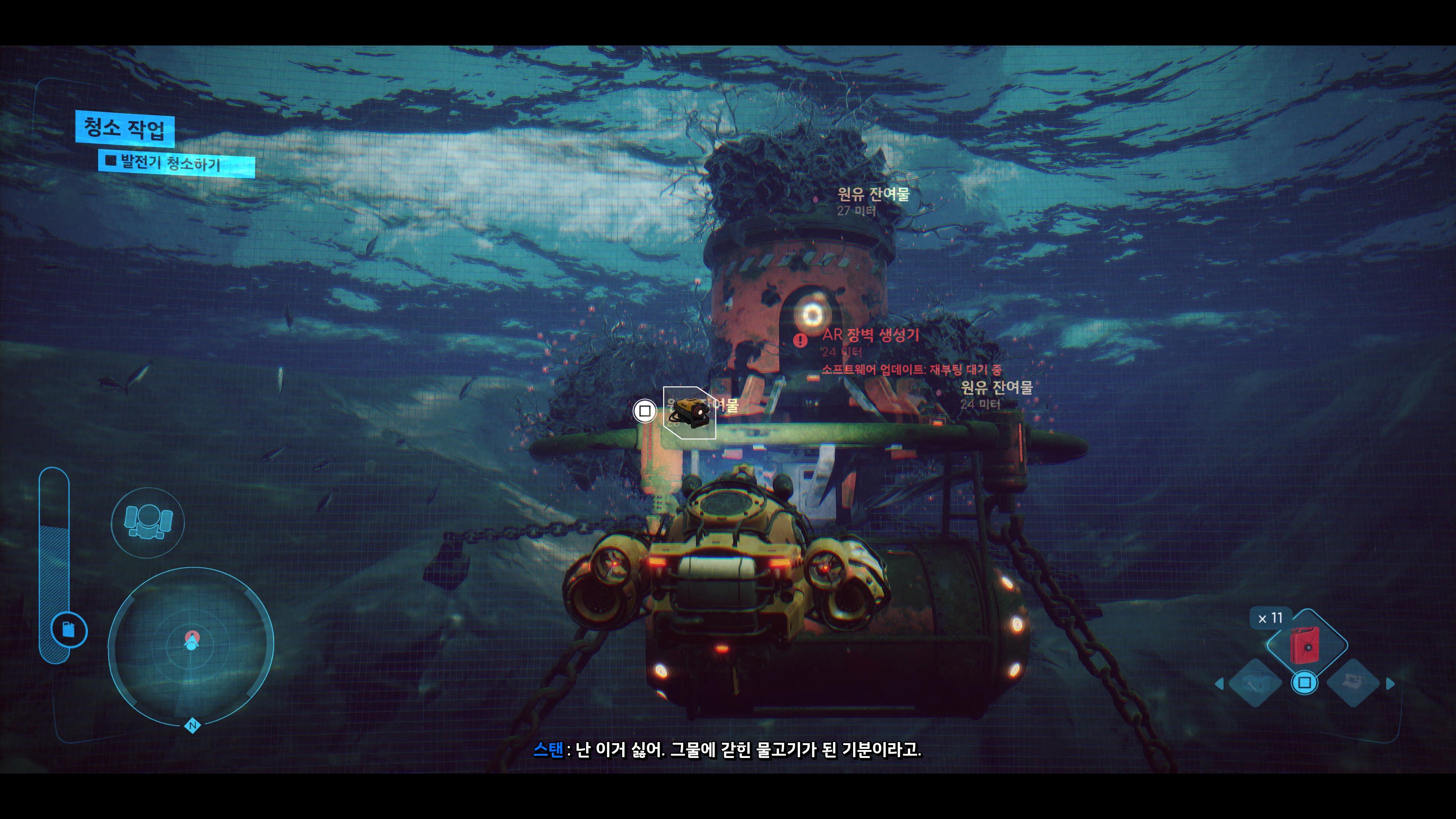 이 과정에서 자연스레 바닷속에 가라앉은 거대 쇳덩이들부터 시작해서 바다동물들까지 잔뜩 마주치게 되어있다.