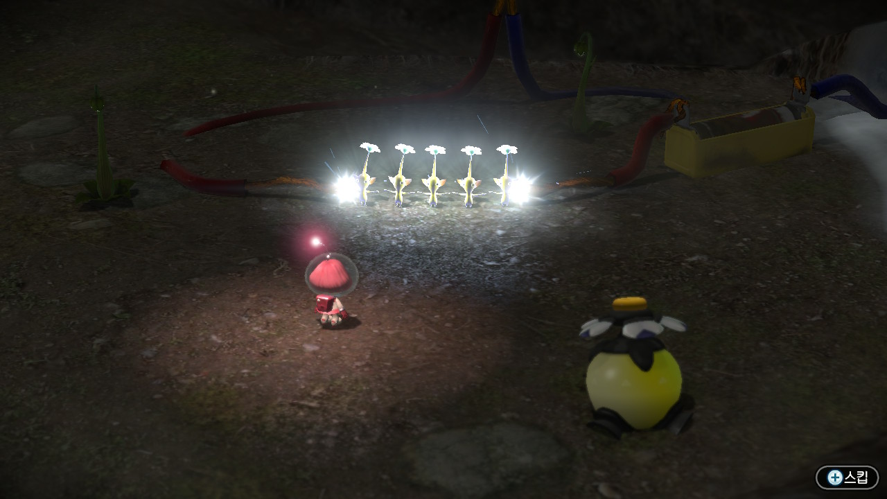 그리고 B버튼으로 호루라기를 사용할때 날아다니는 피크민까지 있다보니 호루라기를 오래 누르고있으면 높은곳에 있는 피크민들까지 집합시키는게 가능해졌다.