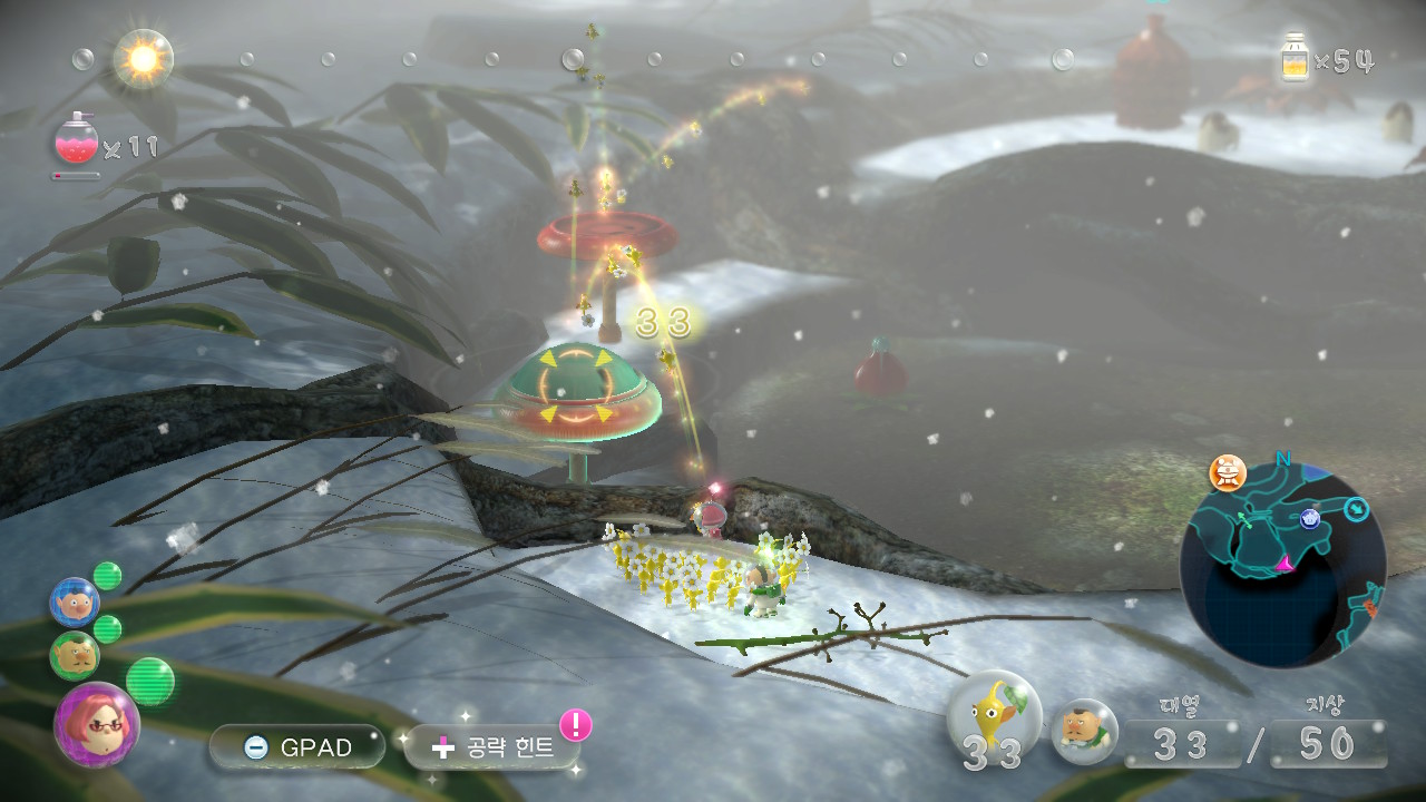 이동하면서 피크민들을 휙휙 던지는게 가능해졌기에 원주생물의 공격을 요리조리 피해다니면서 피크민을 막 던지는게 되다보니 게임이 1,2보다는 훨씬 쾌적할 것이다.