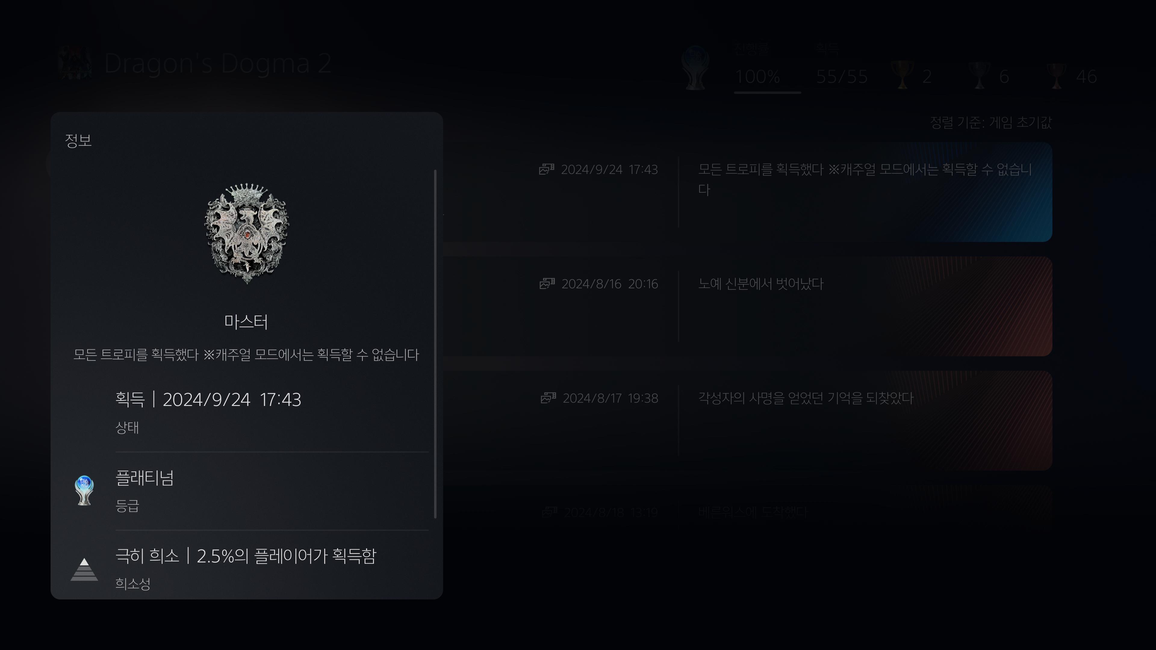 트로피는 80개만 모으면 획득하며 보상은 220개까지만 존재한다. 나머지 20개는 자기만족의 영역.