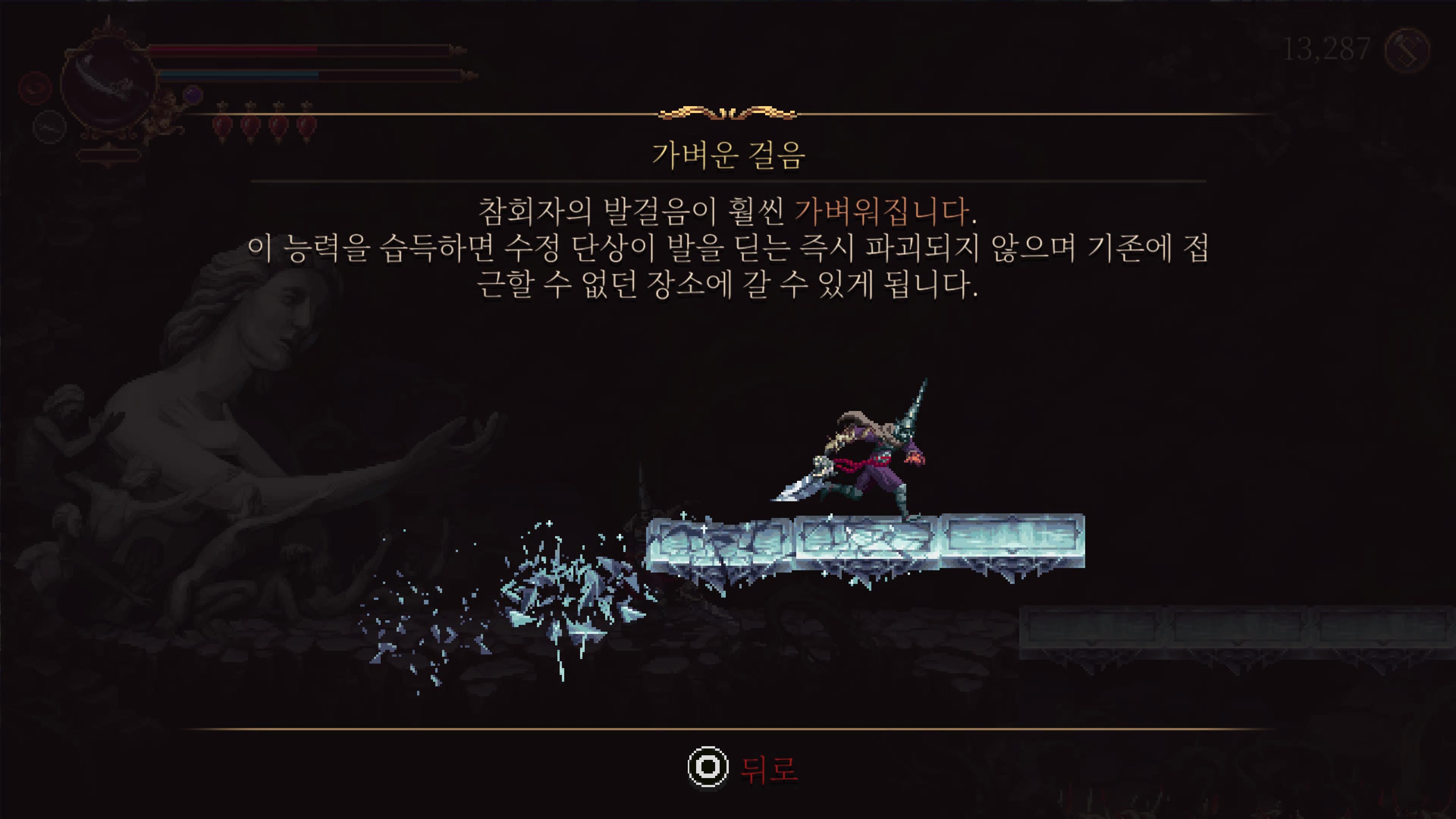 부서지면 필드 어딘가에 있는 진흙 여인을 다시만나 다시 복구하며 이 과정을 몇번 반복하게된다.