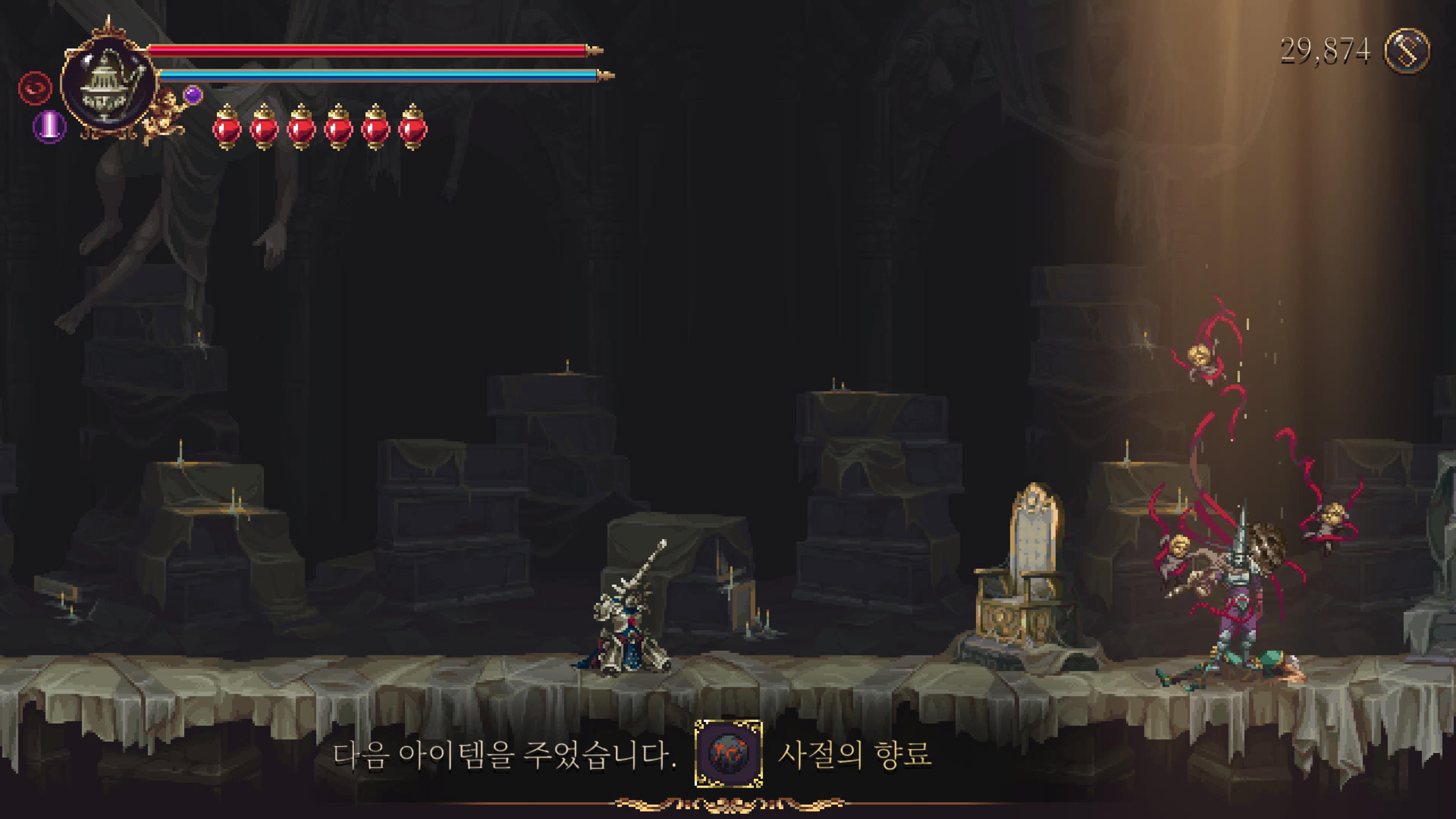 참고로 이번 DLC에선 조각상 4개 불태울거 없이 엔딩을 볼때마다 사절의 향료가 퀘스트 아이템에 자동으로 들어가있다.