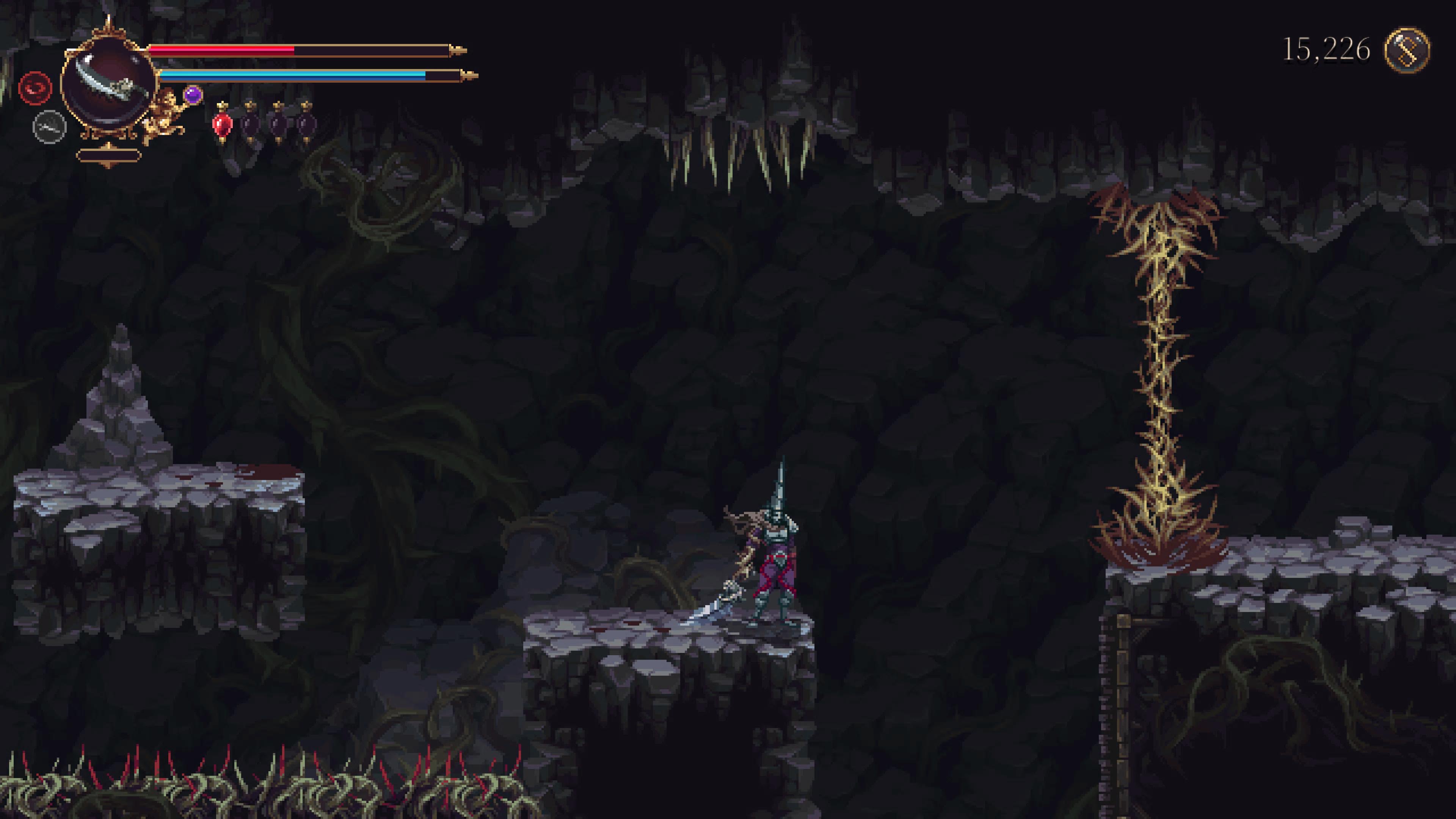 메아 쿨파를 획득하면 일반공격시 자동으로 검기를 날리게 되는데 해당 검기가 저 가시에 닿으면 검기가 참회자의 잔상으로 바뀌어 가시를 통과하고 그때 잔상으로 순간이동할 수 있다.