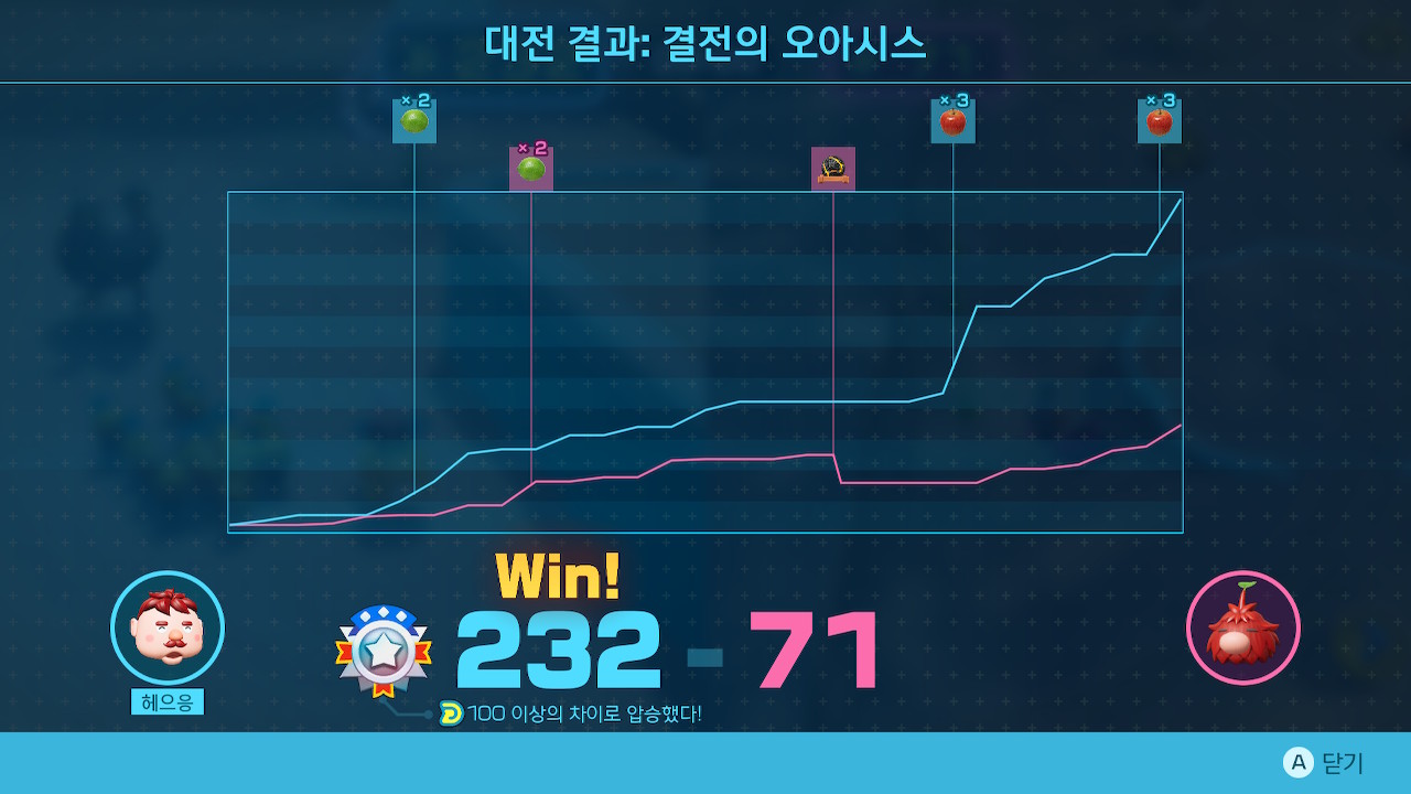 어느정도 스토리를 진행하면 역전폭탄이라는게 등장하는데 이걸 상대 오니용에 먹일 경우 점수를 퉷 하고 뱉어버려서 이걸 들고 아군 오니용한테 먹이면 한꺼번에 점수 올리는게 가능하다...지만 실상 몇십점 수준이라 결국은 프리미엄 항목과 금괴 회수를 열심히하는편이 더 나았던거같기도하고... 상대방이 아군쪽 진영에 한번씩오면 괴롭힌다던가.