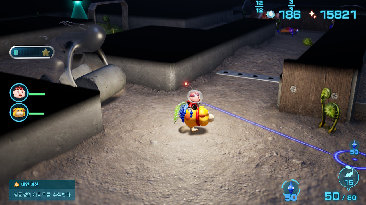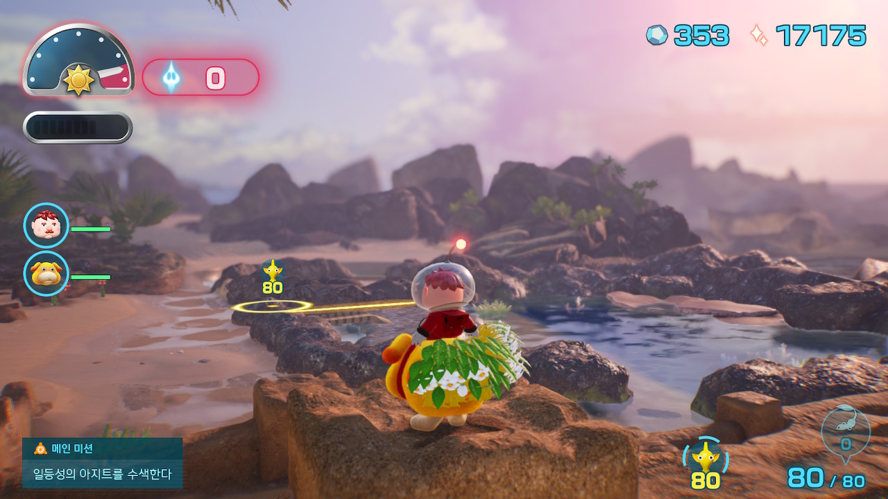 야간탐색은 일종의 디펜스 게임인데 이 반짝피크민들을 이용해서 와치와 함께 빛둑을 아침까지 지키는 일을 하게된다.