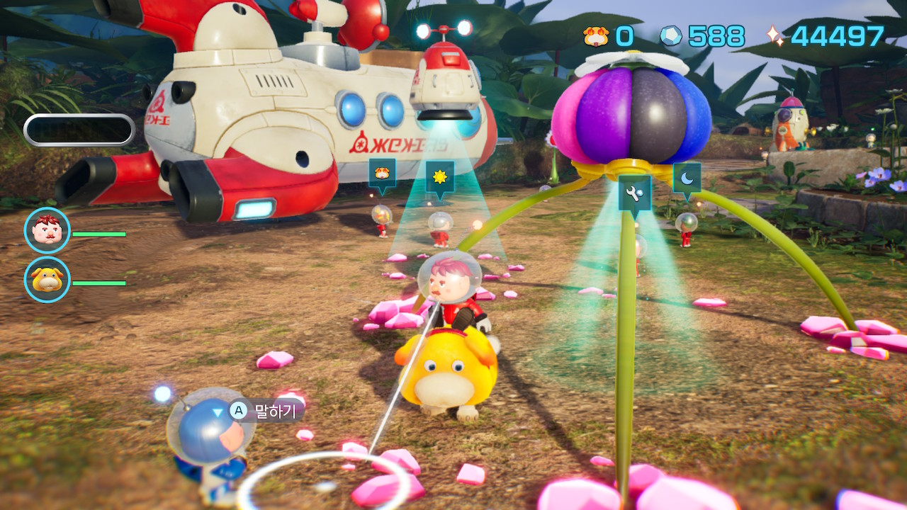 와중에 스토리 진행중에는 여전히 하양피크민과 보라피크민은 지하의 뻥튀기초에서만 생산가능하기때문에 보이는 족족 열심히 뽑아놓는게 좋다.