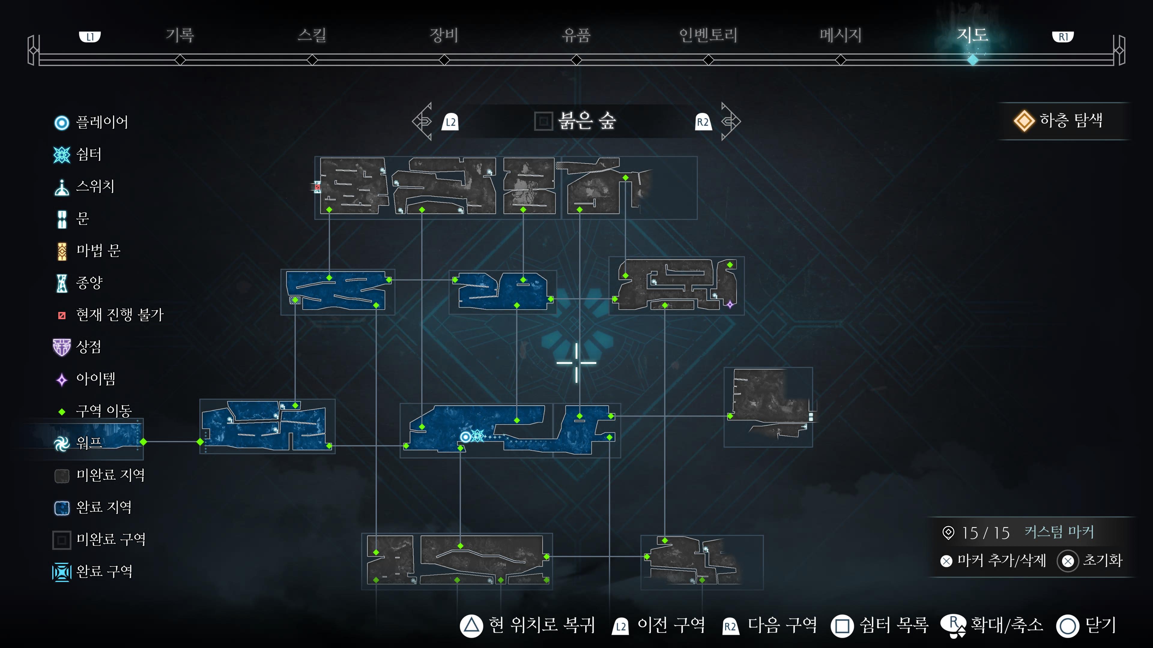 해당 지도위치를 컴플리트하게되면 파랑색이되고 뭔가 놓쳤다면 회색으로 구분짓는건 릴리스때도 있었던 기능이라 마크를 사용한적은 개인적으로 없었다.